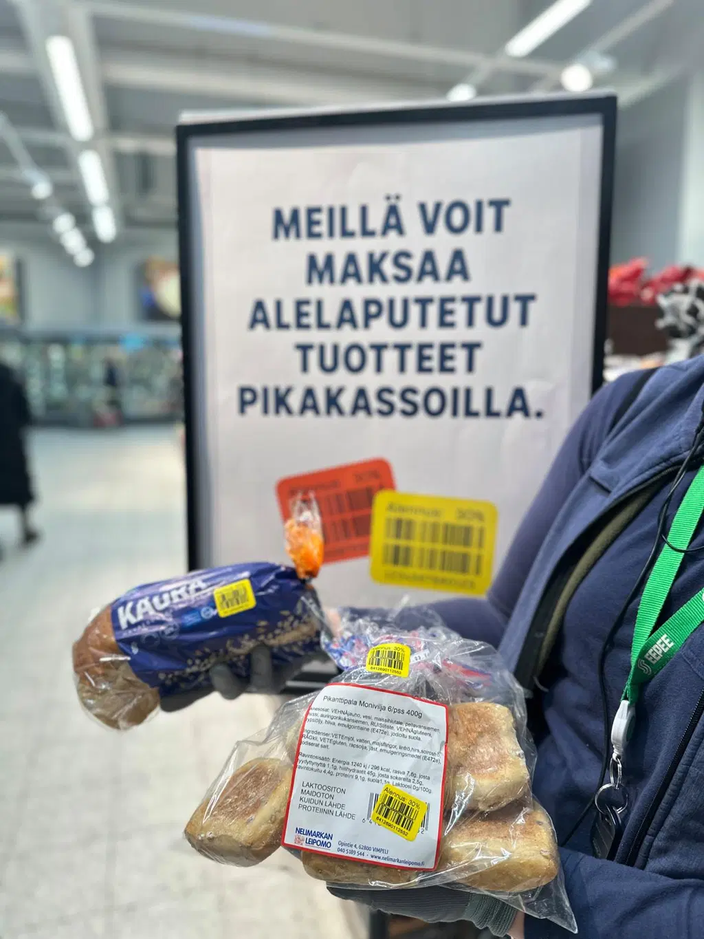 Viivakoodilliset aletarrat leviävät Eepeen S-marketeissa – helpompaa asiointia ja sujuvampaa kassatyötä!Eepeen S-marketeissa otetaan jälleen yksi askel kohti sujuvampaa asiointia, kun viivakoodilliset tuotekohtaiset aletarrat rantautuvat yhä useampaan myymälään. Ja mikä parasta, nämä tarrat toimivat myös itsepalvelukassoilla, jolloin alennus aktivoituu automaattisesti. Kassajärjestelmä tunnistaa kellonajan mukaan myös sen, kun asiakas on oikeutettu viimeisen kolmen tunnin -60 % tupla-alennukseen. Kätevää sekä asiakkaalle että henkilökunnalle!