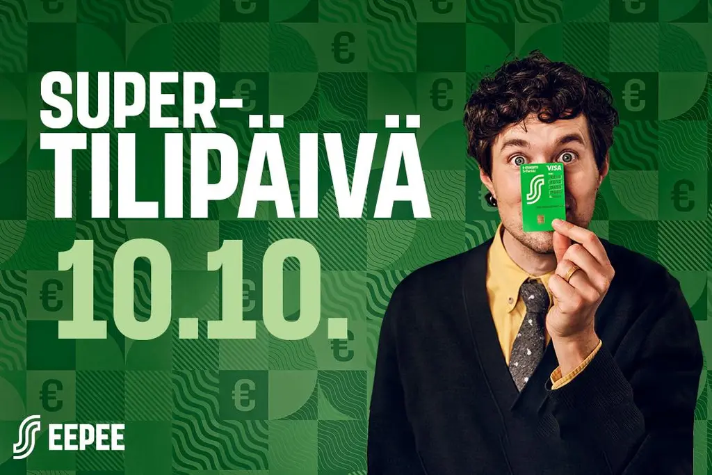 Super-Tilipäivää juhlitaan pe 10.10.2025, jolloin Bonukset kilahtavat tilille!Perjantaina 10.10. on Omistajan Super-Tilipäivä, jolloin Bonukset kilahtaa tilille. Super-Tilipäivän kunniaksi Seinäjoen S-ravintoloissa luvassa on huipputarjouksia sekä mahtavaa ohjelmaa!Amarillo, Lakeus Matador, Rosso, Talriikki S-mobiilin etukupongilla asiakasomistajaviinipullo 10 € (norm. S-Etukortilla 24,90 €). Valkoviini: Vinhas do Ocidente Branco | Punaviini: Vinhas do Ocidente Tinto.Karma S-mobiilin etukupongilla asiakasomistajaviinipullo 10 € (Vinhas Do Ocidente white | Norm. S-Etukortilla 24,90 €).Babista S-Etukortilla Iskender 10 € (norm. 12,50 €).Pizza&Buffa Prisma Seinäjoki S-Etukortilla Buffantai 10 € (norm 13,70 €).Pub Wilson Seinäjoki Super-Tilipäivän Kymppibileet: esiintymässä Mikko Harju. Ilmainen sisäänpääsy | Ruoka- ja juomatarjouksia | Katettu ja lämmitetty terassu | K18.Original Sokos Hotel Vaakuna & Lakeus S-mobiilin etukupongilla hotelliaamiainen 10 € (norm. 19 €).ABC-Liikennemyymälät S-Etukortilla 2x 5 L käyttövalmista –20°C Car-S lasinpesunestettä yhteishintaan 10 € (norm. 5,95-7,95 €).Tarjoukset voimassa vain perjantaina 10.10.2025. Sinua saattaisi kiinnostaa